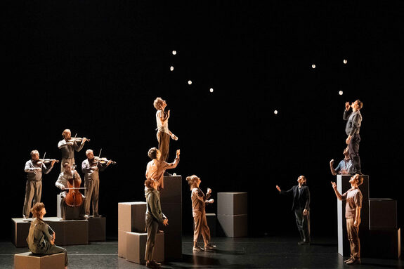 Sur scène . 10 artistes de cirques (jongleuses et jongleurs) vont rencontrer 4 musiciens .